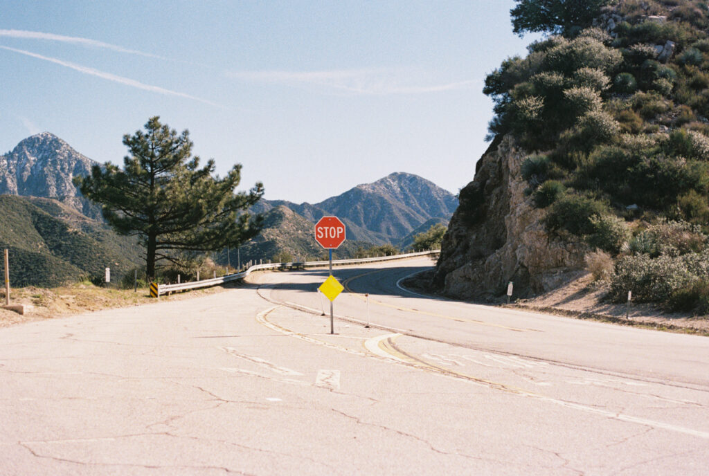 I was climbing the Angeles Crest Highway now. Traffic had accumulated on the narrow curves that traced the mountain. Had the music stopped, or was it just the ambient? No… my phone signal cut out. I followed the twists and turns up and up and up. Water from the recent rains was flowing across the asphalt in sections. I thought about how the water’s path was dictated by the mountain. It was an arrangement that preceded our paving, and yet it was the water that looked out of place on the road.